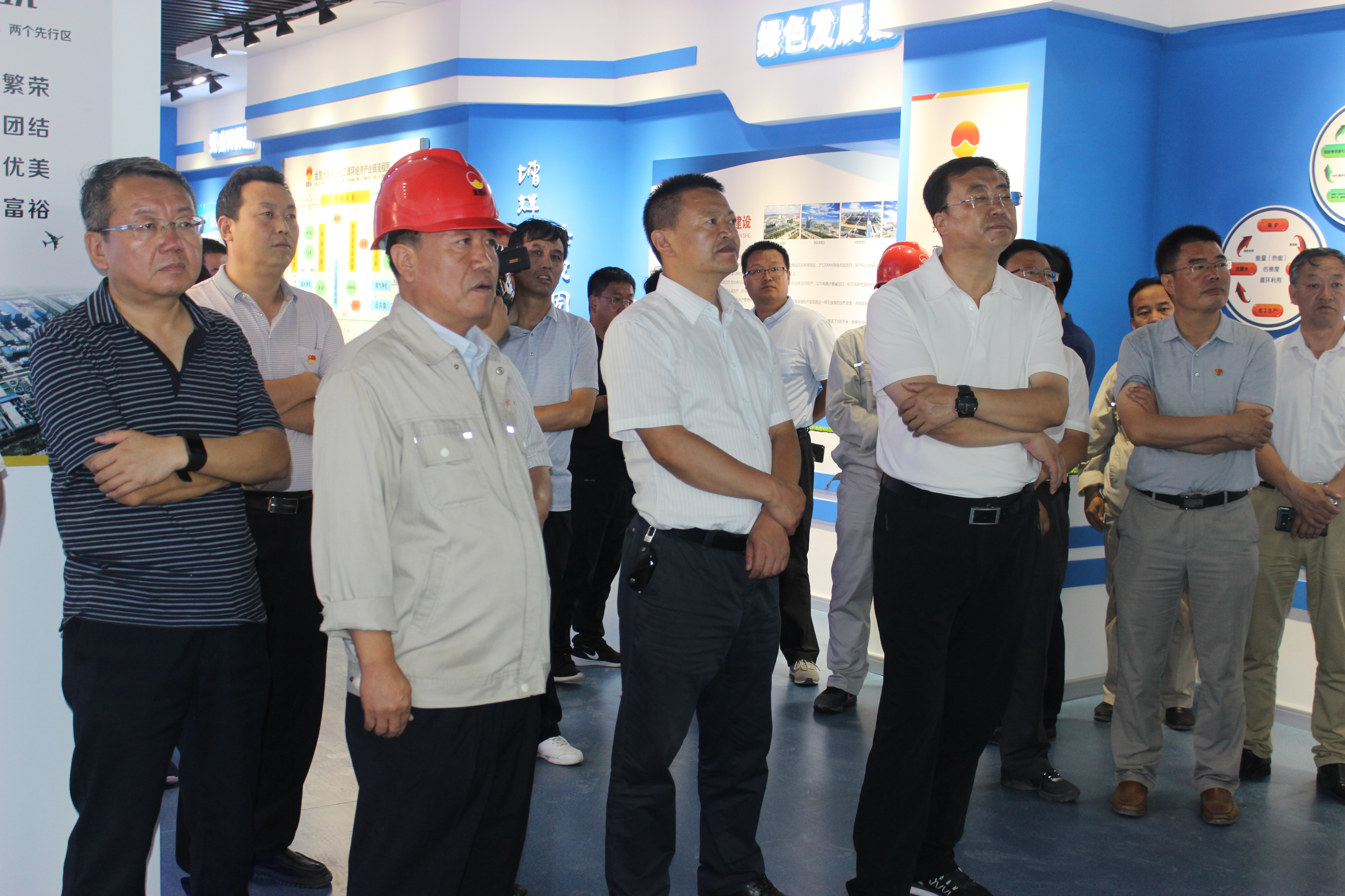 張柱書記、馬漢成市長一行先后到氫氣處理南側(cè)小廣場、公司展廳進行觀摩。副董事長陳文泓首先表達了對張柱書記、馬漢成市長一行的歡迎,并就公司目前生產(chǎn)經(jīng)營、項目建設等方面情況做了匯報。