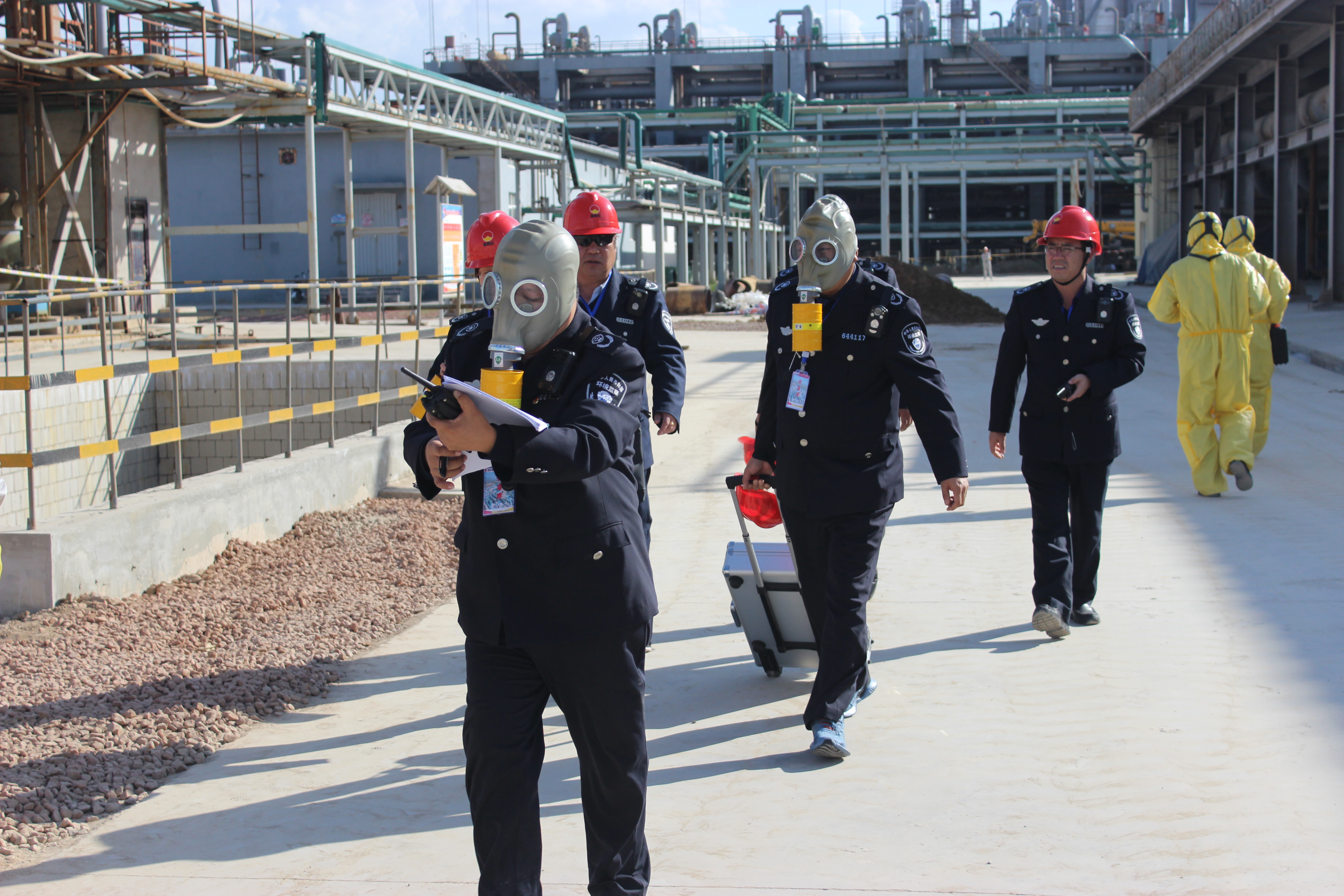 為有效應(yīng)對(duì)各類突發(fā)性環(huán)境污染事件,妥善處置次生環(huán)境污染,進(jìn)一步提高操作人員處理突發(fā)環(huán)境事故的應(yīng)急能力。2018年10月11日下午15時(shí),由固原市環(huán)保局主辦,寧夏金昱元廣拓能源有限公司承辦,在化工公司廢硫酸回收處理裝置北側(cè)小廣場(chǎng),舉行了稀硫酸泄漏較大環(huán)境事故應(yīng)急演練。