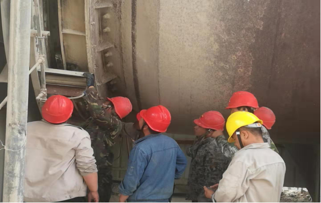 在更換液位計現(xiàn)場,“看來得想其他辦法了”。電儀裝置裝置長王波帶領(lǐng)電儀裝置班組人員經(jīng)過商討,決定利用杠桿原理進(jìn)行拆卸,即一人站在扶梯上固定螺栓,一人在一米遠(yuǎn)的平臺上撬,終于擰動了生銹的螺栓,將液位計成功拆卸。而此時,他們又接到了一項新的檢修任務(wù):檢修并緊固窯尾電動機。