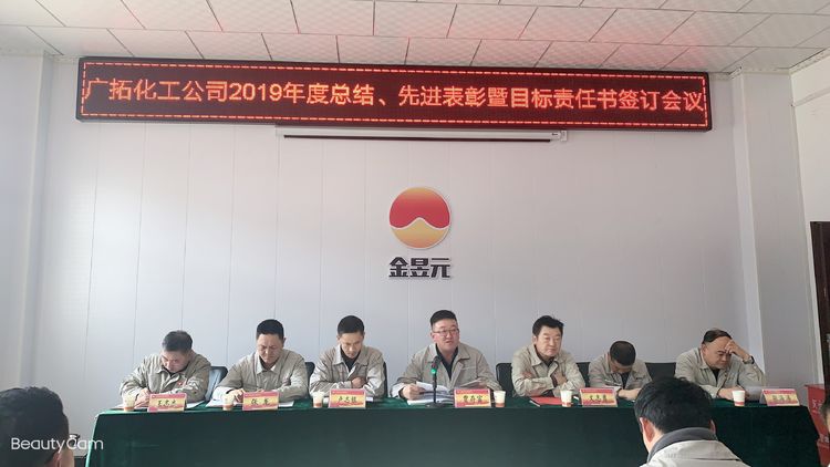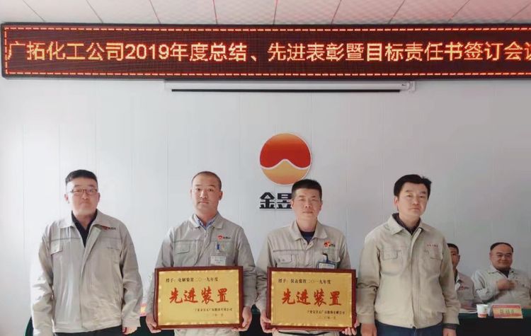 春節(jié)前期,廣拓能源化工公司組織召開2019年度工作總結、先進表彰暨目標責任書簽訂會議。本次會議由公司副總經理盧志銀主持,化工公司總經理、副總經理、安全總監(jiān)、副總工程師出席,25名先進集體、個人及70余名職工代表參加。