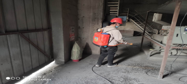 對(duì)廠區(qū)衛(wèi)生間消毒。