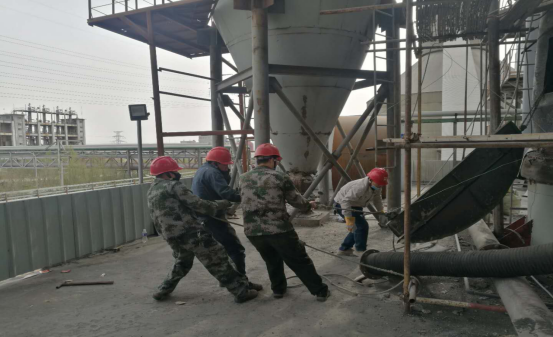 在清理結(jié)皮現(xiàn)場(chǎng),面對(duì)預(yù)熱器本身設(shè)備的炙烤外,還有夏季本身炎熱,而他們?cè)诿恳惶幾鳂I(yè)點(diǎn),都是那樣“激戰(zhàn)正酣”,他們輪流揮舞著大錘敲打著鋼釬,熟練、小心的用著“水炮”,一遍又一遍,敲碎了“結(jié)皮”,疏通了管道,每一點(diǎn)都是力氣活,耗時(shí)耗力。有時(shí)候,往往一錘下去鋼釬卻絲毫不動(dòng),但我沒(méi)從他們臉上看到灰心的表情。近12個(gè)小時(shí)的工作量,但從井然有序的場(chǎng)面我仍然可以看出他們有分工也有協(xié)作,同時(shí)銘記安全第一。