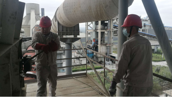 在預(yù)熱器每一層框架,讓我們都會(huì)有一種“未見(jiàn)其人,先聞其聲”的感覺(jué),錘子的敲擊聲、檢修負(fù)責(zé)人的交底聲,聲聲入耳,像是一首和諧的樂(lè)章。