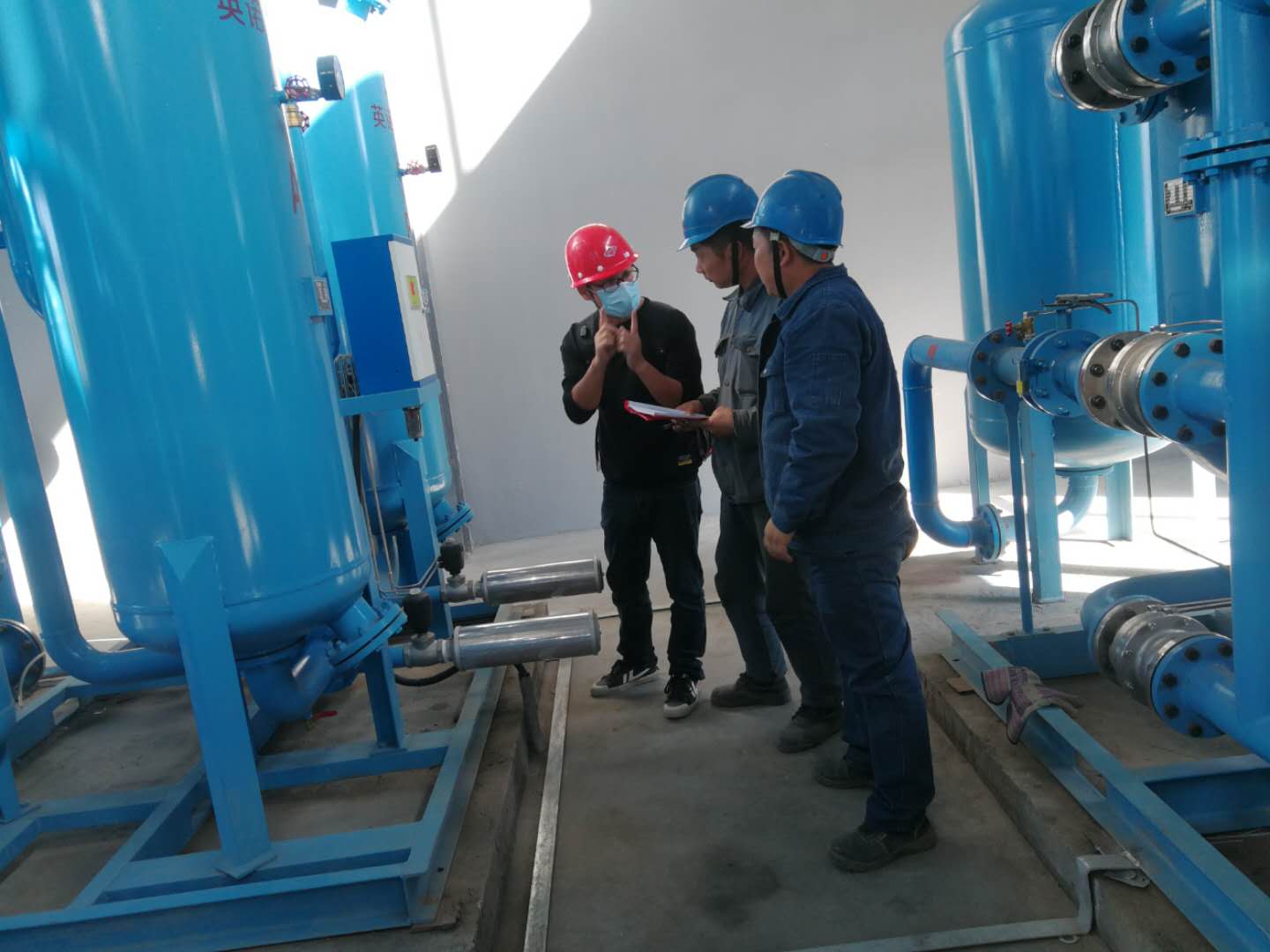 截止發(fā)稿前,空分制氮已經(jīng)開機打壓試車,發(fā)現(xiàn)漏點及時消除后再次重復(fù)對后系統(tǒng)儲罐設(shè)備打壓試車。試壓的同時本公司維修人員積極向廠家技術(shù)人員請教空分制氮設(shè)備的常見故障及處理方法。