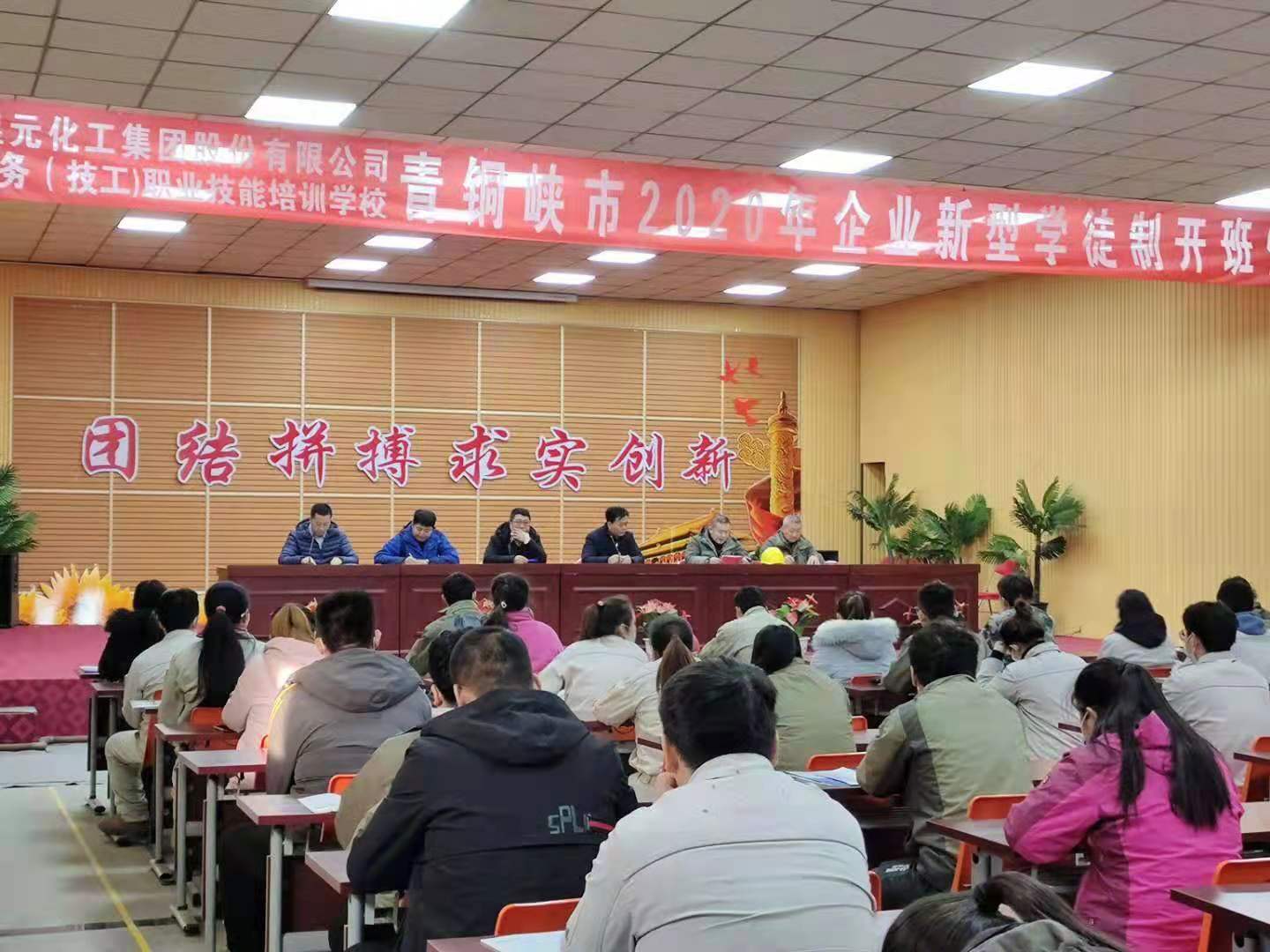 2020年12月22日,寧夏金昱元化工集團有限公司與寧夏新商務(技工)職業(yè)技能培訓學校聯(lián)合開辦的青銅峽市2020年企業(yè)新型學徒制開班儀式在集團公司職工活動中心舉辦,青銅峽市工信廳相關(guān)領(lǐng)導以及青銅峽片區(qū)總經(jīng)理助理丁青林和集團公司企管部宋釗參加此次開班儀式.青銅峽片區(qū)各子公司2020年新入職員工全部參加此次開班儀式。在今后的工作中,所有新員工將會在工作空余時間參與學校集中培訓,逐步提高各類操作技能,達到獨立上崗的操作要求。
