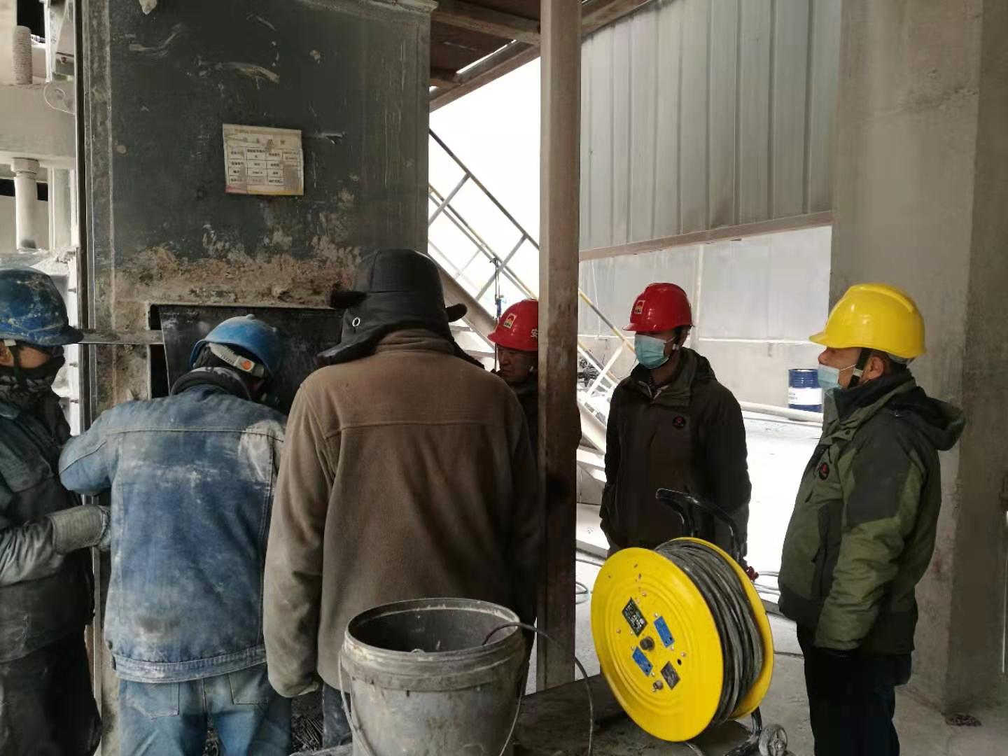 檢修作業(yè)全程跟蹤,一天一夜檢修下來(lái),有睡在辦公室沒回家的,也有吃飯就在作業(yè)現(xiàn)場(chǎng)……比比皆是?偨(jīng)理吳紅衛(wèi)更是如此,一個(gè)作業(yè)一個(gè)作業(yè)現(xiàn)場(chǎng)轉(zhuǎn)上轉(zhuǎn)下,從2026提升機(jī)作業(yè)點(diǎn)到回轉(zhuǎn)窯主傳減速機(jī),再到篦冷機(jī)、煤磨、烘干破、預(yù)熱器、2301、2323、2401提升機(jī)以及高溫風(fēng)機(jī)、回轉(zhuǎn)窯窯內(nèi)及燃燒器檢修現(xiàn)場(chǎng),指導(dǎo),建議,一直值守在現(xiàn)場(chǎng),忙著跟工人們同時(shí)收工,一整晚都未歸宿就寢室。工人們,裝置長(zhǎng)擔(dān)心他的身體,時(shí)常提醒讓他回去休息一下,喝口水,而他放心、安慰大家說(shuō),“我和大家一樣的心情,早完工,產(chǎn)量就能早生產(chǎn)一點(diǎn),我們后續(xù)生產(chǎn)就能輕松一點(diǎn),大家加油”。一直以來(lái),他和這個(gè)班子成員、工人們一起頂著嚴(yán)寒,一直堅(jiān)守在現(xiàn)場(chǎng)安全履職和協(xié)調(diào)把控檢修進(jìn)度,不厭其煩的一次次的詳細(xì)交底,直到一項(xiàng)一項(xiàng)設(shè)備檢修更換完畢。