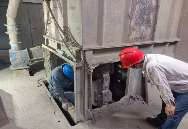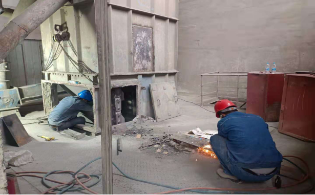 水泥磨檢查更換隔倉板、堆焊輥壓機(jī)輥面,技改v選入口分料裝置、調(diào)整v選揚(yáng)料板、穩(wěn)料倉,裝置長要求維修班全體人員在確保人員安全的前提下務(wù)必按時完成所有檢修項(xiàng)目,并調(diào)試運(yùn)行。雖然此次搶修任務(wù)時間緊迫,但安全永遠(yuǎn)是排在第一位。在工作前,按照屬地管理原則,層層對檢修作業(yè)人員進(jìn)行安全技術(shù)交底,要求檢修人員臨邊作業(yè)時必須要戴好安全帶,帶好耳塞和口罩,每位作業(yè)人員進(jìn)行危險源辨識完成后才能進(jìn)行作業(yè)