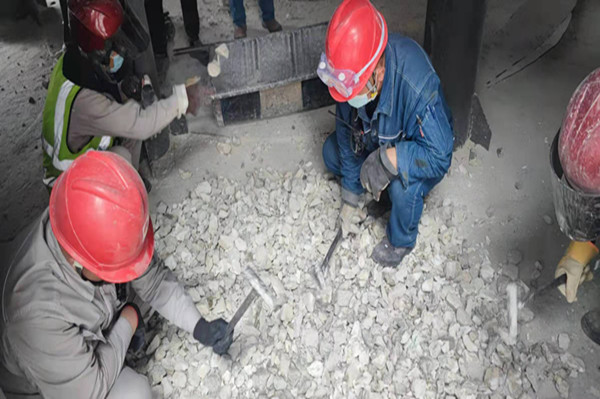 嚴(yán)格執(zhí)行白灰窯燒嘴看火及出灰探料管理機(jī)制;白灰窯崗位每班安排1-2個人,每小時使用鋼釬對四層燒嘴處沉料情況進(jìn)行確認(rèn),每次出灰必須檢查出灰機(jī)內(nèi)是否有結(jié)瘤。發(fā)現(xiàn)燒嘴處物料燒結(jié)不沉料時,立即關(guān)小或關(guān)閉相對應(yīng)的煤氣閥門,等待觀察沉料情況。發(fā)現(xiàn)出灰機(jī)有結(jié)瘤無法正常出料時,立即組織人員清理結(jié)瘤,避免物料煅燒超時燒結(jié)。