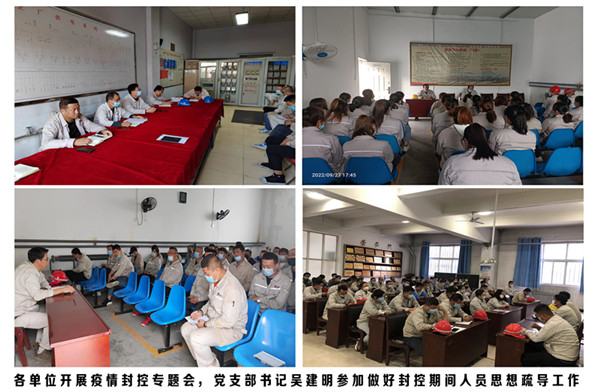 自疫情暴發(fā)以來,公司高度重視,按照集團公司于9月23日下發(fā)《關于全面做好疫情防控的通知》,9月26日青銅峽片區(qū)下發(fā)《青銅峽片區(qū)疫情防控補充要求》,馬上嚴格執(zhí)行疫情防控工作。能源化學公司綜合科劃定責任區(qū)落實到個人,嚴格做好單身樓、公寓樓、辦公樓、餐廳消毒滅殺工作;嚴格做好全員健康碼、行程碼兩碼查驗工作;嚴格做好每天疫情防控統計上報工作(人員外出返青、外來人員入青以及員工居家隔離動態(tài)變化情況);嚴格做好餐廳消毒、人員測溫、環(huán)境衛(wèi)生、食品安全、安全用電工作;嚴格監(jiān)督管理禁止人員聚眾賭博和班前酗酒;嚴格做好澡堂管理工作早上8:30至晚上8:00全天供應熱水,做好疫情防控和后勤保障工作;黨支部積極號召黨員做好志愿者,發(fā)揮黨員先鋒作用做好職工思想疏導工作。