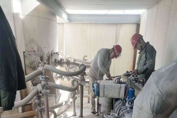 動力裝置檢修人員可謂是上得橋架,下得消防井,游走于水、陸、空之間。全力以赴更換2#白灰窯環(huán)管快切閥門,一絲不茍移換凈化配電室配電柜,已經更換及清洗部分填料工作和修復的冷卻塔集水盤就可以展現(xiàn)他們水、陸、空作業(yè)的能力。還有狹小空間里作業(yè)的人員,切割、焊接毫無妨礙。原料裝置也不遜色,更換布袋這份工作都已經如囊中取物,不管是除塵器還是窯前倉,都已經被他們輕輕松松完成。力氣是他們特有的魅力,細心是他們工作的態(tài)度,用肥皂水查找并消除噴槍層漏點,用抹布擦凈每臺設備。