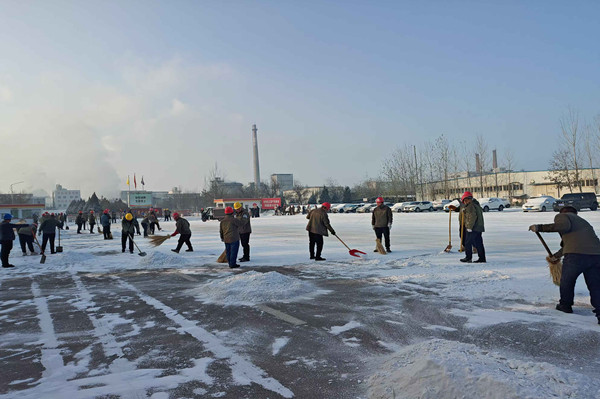 在除雪過程中,領導們始終與員工們并肩作戰(zhàn),他們不僅是指揮者,更是參與者。當遇到積雪結冰難以清理時,領導們與員工們共同商議對策,現場調配資源。他們親自上陣,與員工們一起喊著口號,齊心協(xié)力將積雪堆攻克。