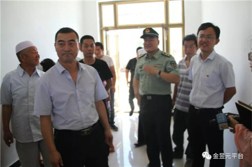 隨后,寧夏軍分區(qū)、青銅峽市人武部、金昱元公司代表來到了位于青銅峽市陳袁灘鎮(zhèn)唐灘村由青銅峽市人武部援建、金昱元公司捐助全套家具和家電的馬光祖家里,看望慰問了馬光祖家人,詳細詢問他們的健康狀況,了解他們生活上的困難,與他們親切交談,鼓勵他們要堅定信心,好好保重身體,度過幸福安詳?shù)耐砟辍?