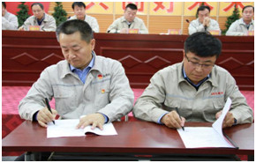為了進(jìn)一步明確權(quán)責(zé),強化各級管理人員的責(zé)任意識,提高履職能力,會上,集團(tuán)公司各級主管領(lǐng)導(dǎo)簽訂了《2019年經(jīng)營管理目標(biāo)責(zé)任書》和《2019年安全環(huán)保目標(biāo)責(zé)任書》。