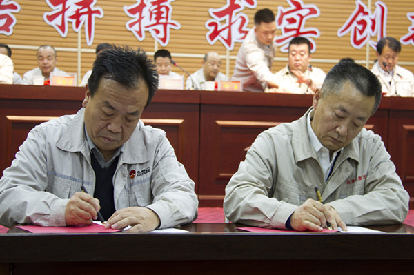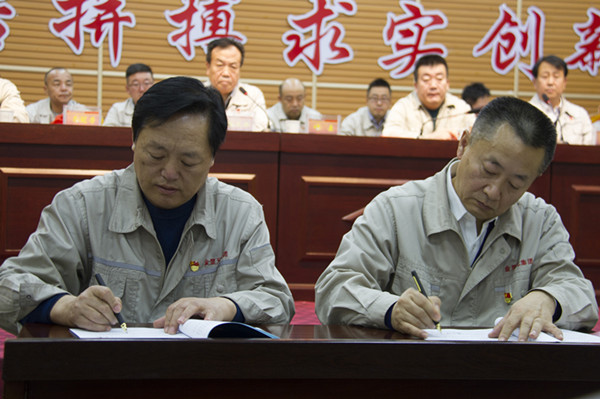 會上,集團高層領(lǐng)導(dǎo)和各主管領(lǐng)導(dǎo)以及各片區(qū)主管領(lǐng)導(dǎo)簽訂目標責(zé)任書。