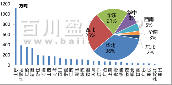 產(chǎn)能:增產(chǎn)集中地為江蘇、內(nèi)蒙古、山東、河北、新疆地區(qū),預計到2023年,中國燒堿產(chǎn)能約4600-4700萬噸,山東省燒堿產(chǎn)能將逼近1300萬噸,新疆維吾爾自治區(qū)燒堿產(chǎn)能有望突破400萬噸,江蘇、內(nèi)蒙古及新疆三地燒堿生產(chǎn)能力旗鼓相當。