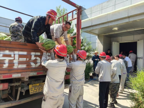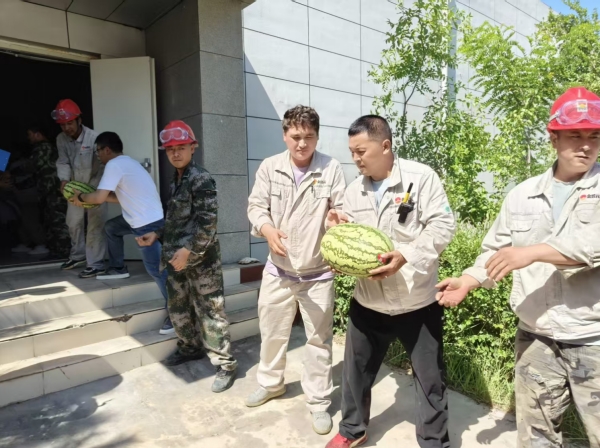 活動(dòng)期間,固原基地工會(huì)深入現(xiàn)場(chǎng),將防暑西瓜分發(fā)到職工手中,為身處高溫工作環(huán)境的職工送去陣陣清涼。同時(shí)對(duì)奮戰(zhàn)在一線的職工致以親切問候,并囑咐大家做好高溫防護(hù),鼓勵(lì)大家在繁忙的工作中積極發(fā)揮勞模精神、工匠精神,為高溫季節(jié)安全生產(chǎn)保駕護(hù)航。